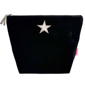 Classic silk velvet larger cosmetic purse/pouch with an appliqued little metallic faux leather star.