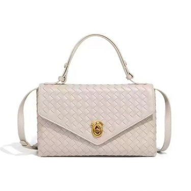 Woven Faux Leather Top Handle Bag with Gold Clasp