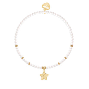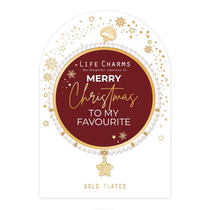 Capture the magic of Christmas with this beautifully crafted crystal beaded bracelet adorned with gold star charm that sparkles with every movement. Thoughtfully designed to bring festive magic to your wrist, it's the perfect accessory for the season. Beautifully presented on a themed gold foiled card featuring the joyful message "Merry Christmas to my favourite", and paired with an elegant gift bag, this bracelet makes a thoughtful gift for someone special or a delightful treat for yourself. Bracelet measures 17.5 cm with room to stretch. E-coated for added protection against tarnishing. Hypoallergenic and crafted to the highest standard