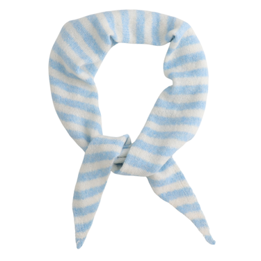 A soft striped scarf that can be tied at the neck to add an extra layer.