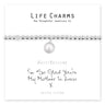 Fresh Water Pearl with silver band Charm, presented on a 5mm beaded stretch bracelet. The bracelet comes presented in a luxury gift box with a Just Because ‘I’m So Glad You’re My Mother In Law’ card. All jewellery is finished to the highest standard & E-coated to prevent any tarnishing.