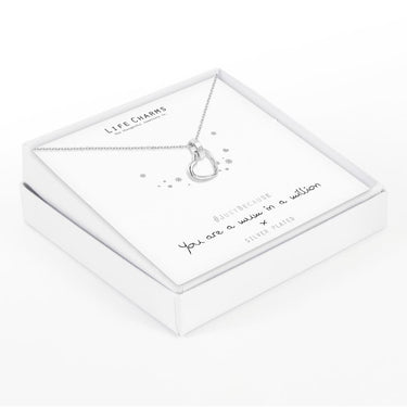 The silver plated necklace with open heart charm. Comes with its own silver foiled sentiment card which reads "You are a mum in the million"- perfect for reminding your Mum how important she is. Presented in elegant gift box. All jewellery is finished to the highest standard & E-coated to prevent any tarnishing