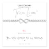 Pure silver plated double conjoined hearts presented on a 5 mm beaded stretch bracelet. The bracelet comes presented in a luxury gift box with a Just Because 'You will forever be my always' card. All jewellery is finished to the highest standard & E-coated to prevent any tarnishing.