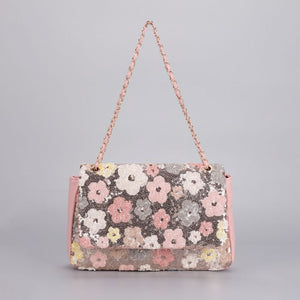 Elegant Floral Print Chain Strap Summer Bag in Pink