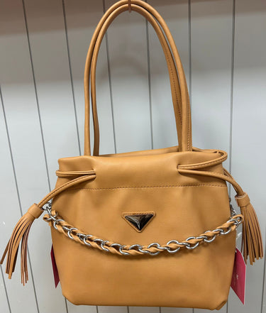 Soft shoulder bag with chain detailing