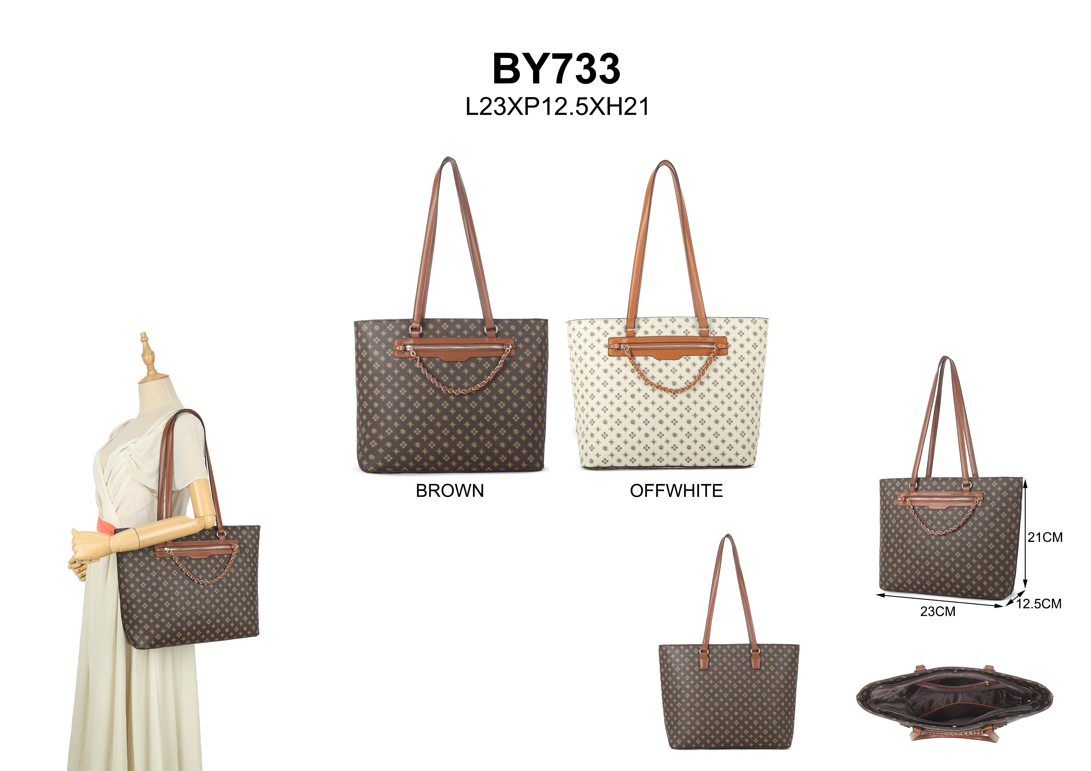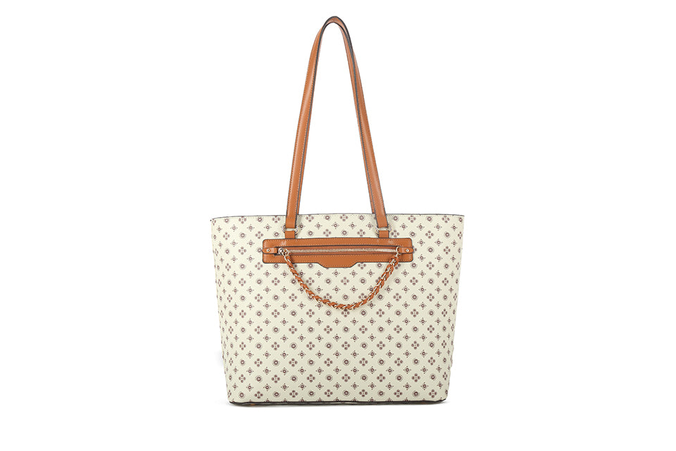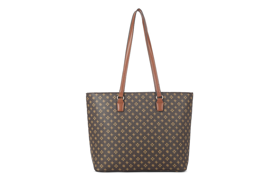 Patterned tote bag in brown