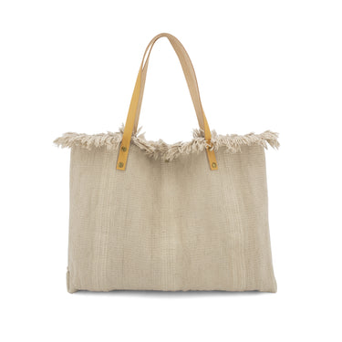 Canvas with Leather Frayed Edges Tote