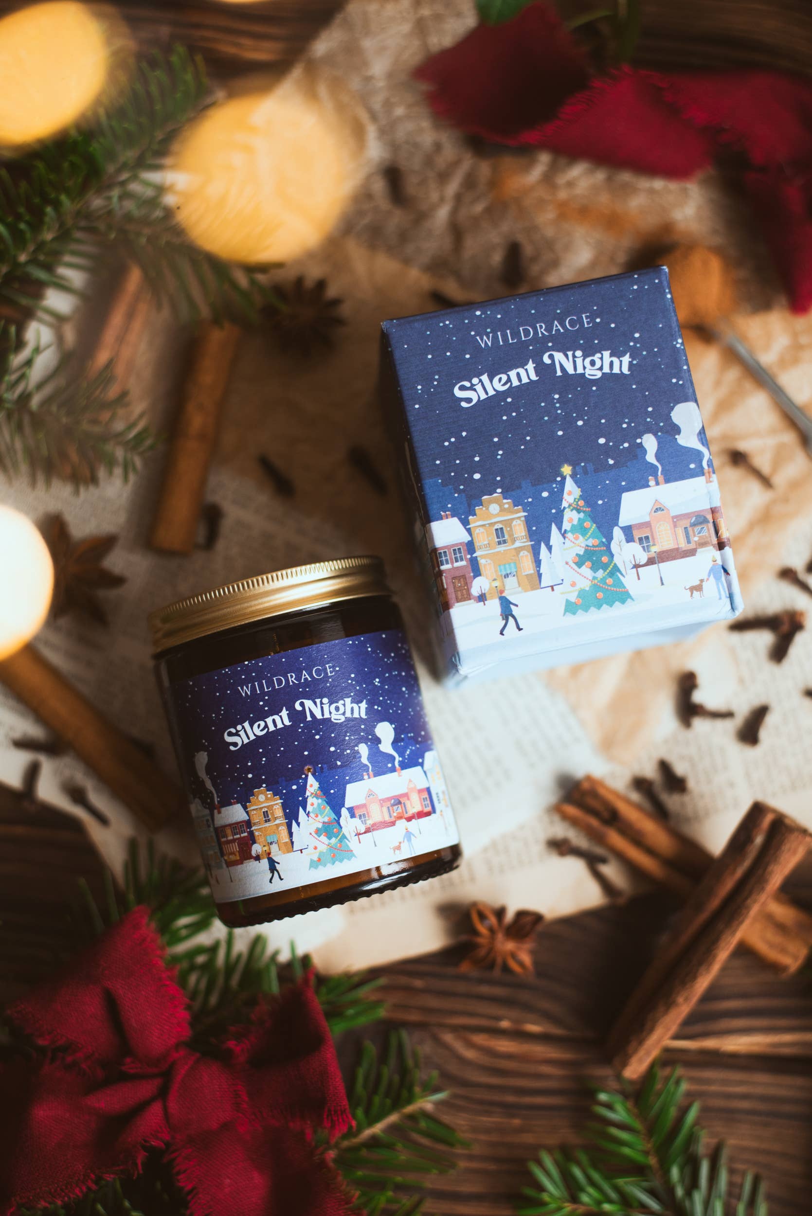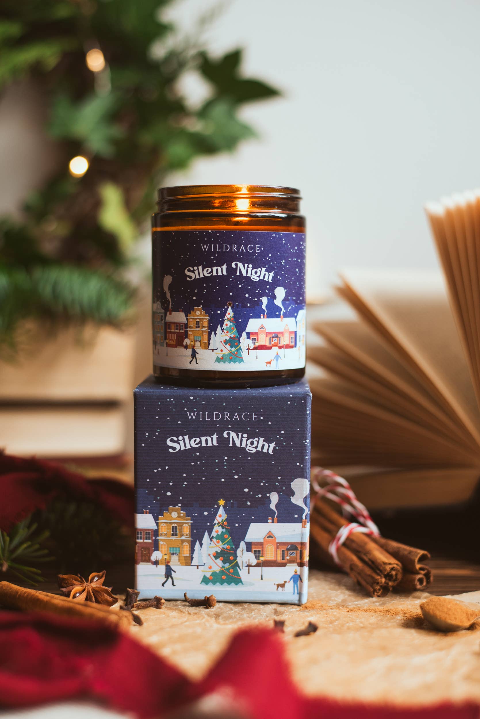 Silent Night captures the stillness and warmth of a winter’s evening - the kind where snow falls softly outside and the glow of the fire flickers through frosted windows. A rich and comforting blend of cinnamon, chestnut, and allspice fills the air with festive depth, evoking the aroma of spiced treats and cosy nights in. It’s a scent that feels like home, nostalgic, grounding, and endlessly soothing. Candle details Enjoy an extended burn time with our sustainably sourced soy wax. 40 Hours. Each candle is hand-poured using 100% natural soy wax, a lead-free cotton wick, and housed in a reusable amber glass jar with lid. We’re proud to say our entire collection is paraben-free, phthalate-free, and uses toxin-free wax, so you can enjoy your candles without worrying about headaches, hormone disruptors, carcinogens or hidden nasties. Our commitment to sustainability doesn’t stop there, your order is shipped completely plastic-free. Spot any squishy packing peanuts? Don’t worry, they’re made from starch, fully