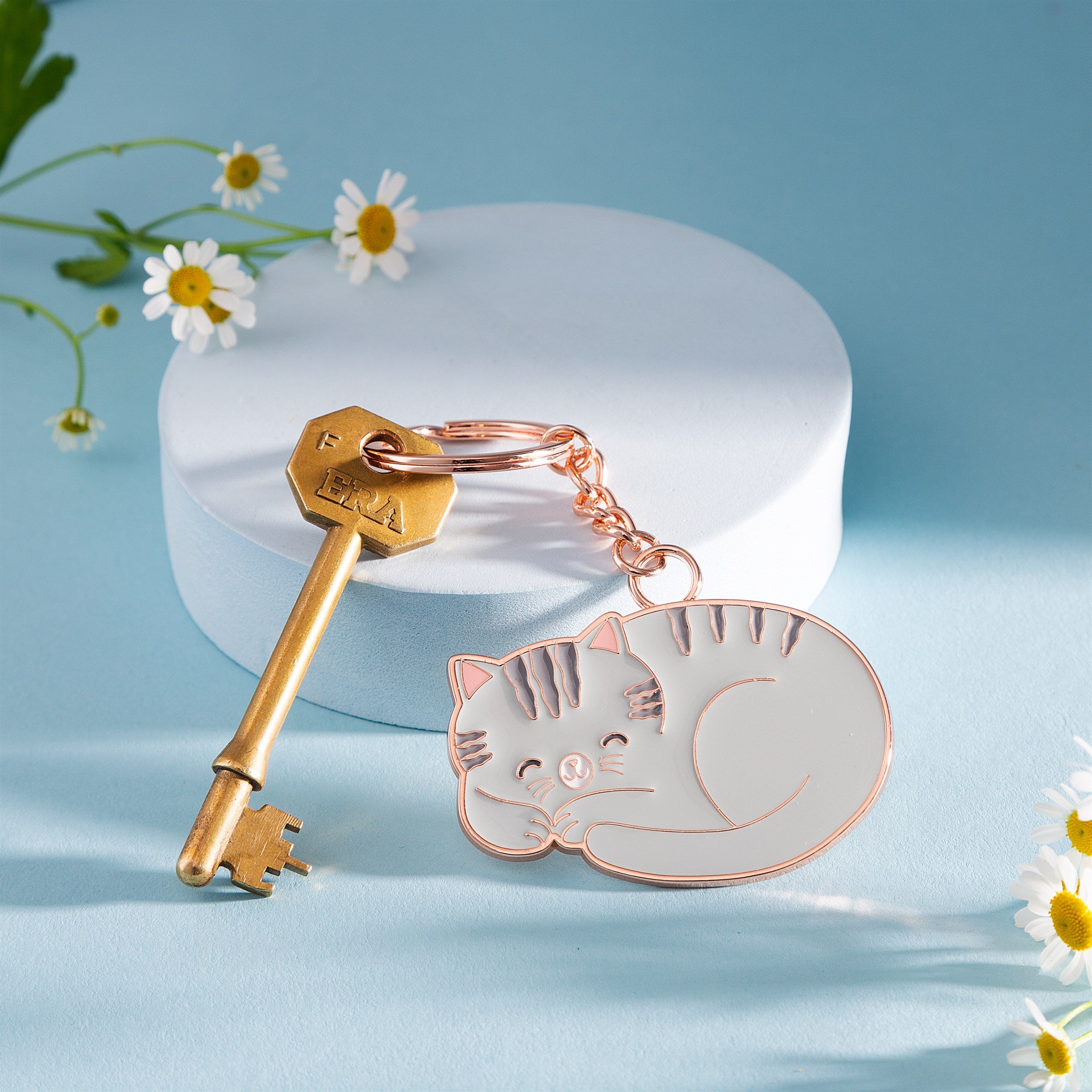 Grey Cat Enamel Keyring