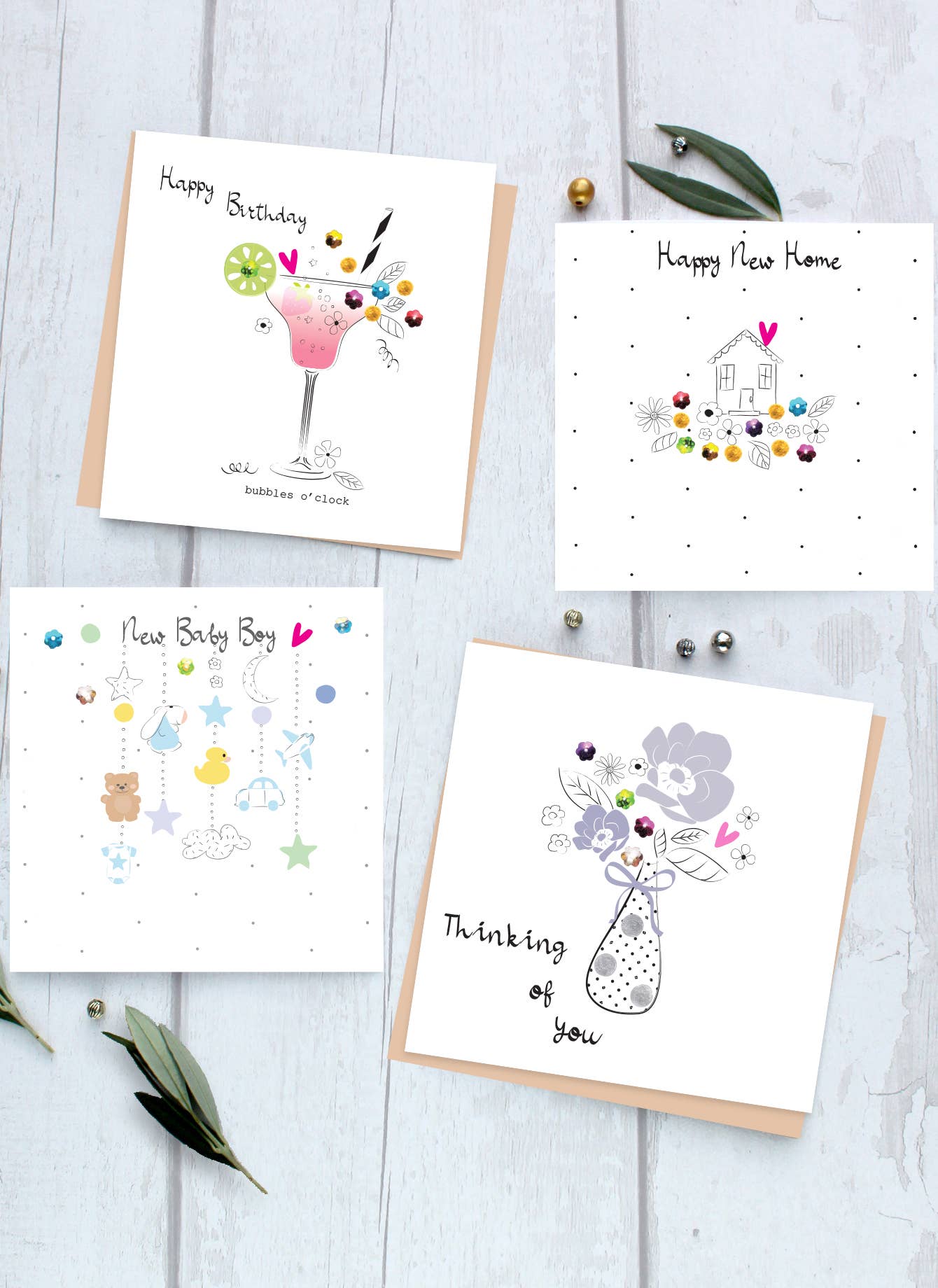 Hand illustrated design from original artwork. The cards are blank inside. Greeting card size is 145 X 145 mm, packed with envelope size is 155 X 155 mm. Designed, crafted and printed in the UK on UK sourced, FSC certified board. Each greeting card is packed with UK sourced, brown kraft 100% recycled envelope and a UK sourced cello bag. It is due to changes in the supply chain.
