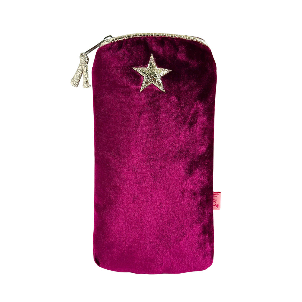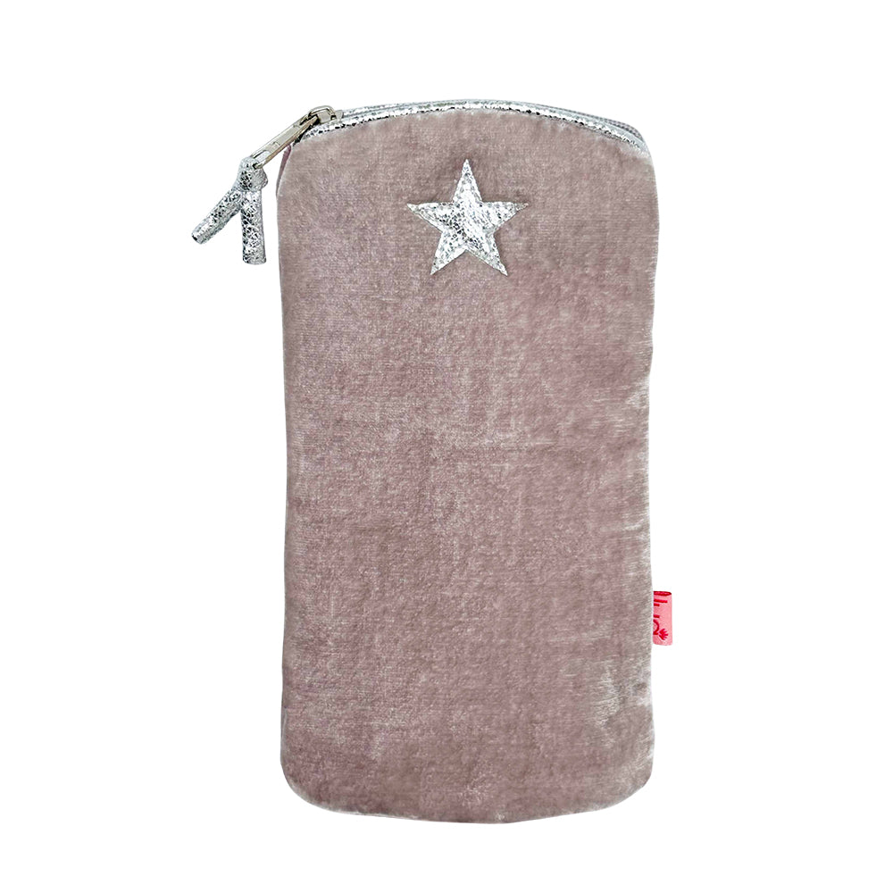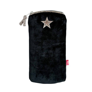 Classic silk velvet zipped glasses purse/pouch with an appliqued little metallic faux leather star