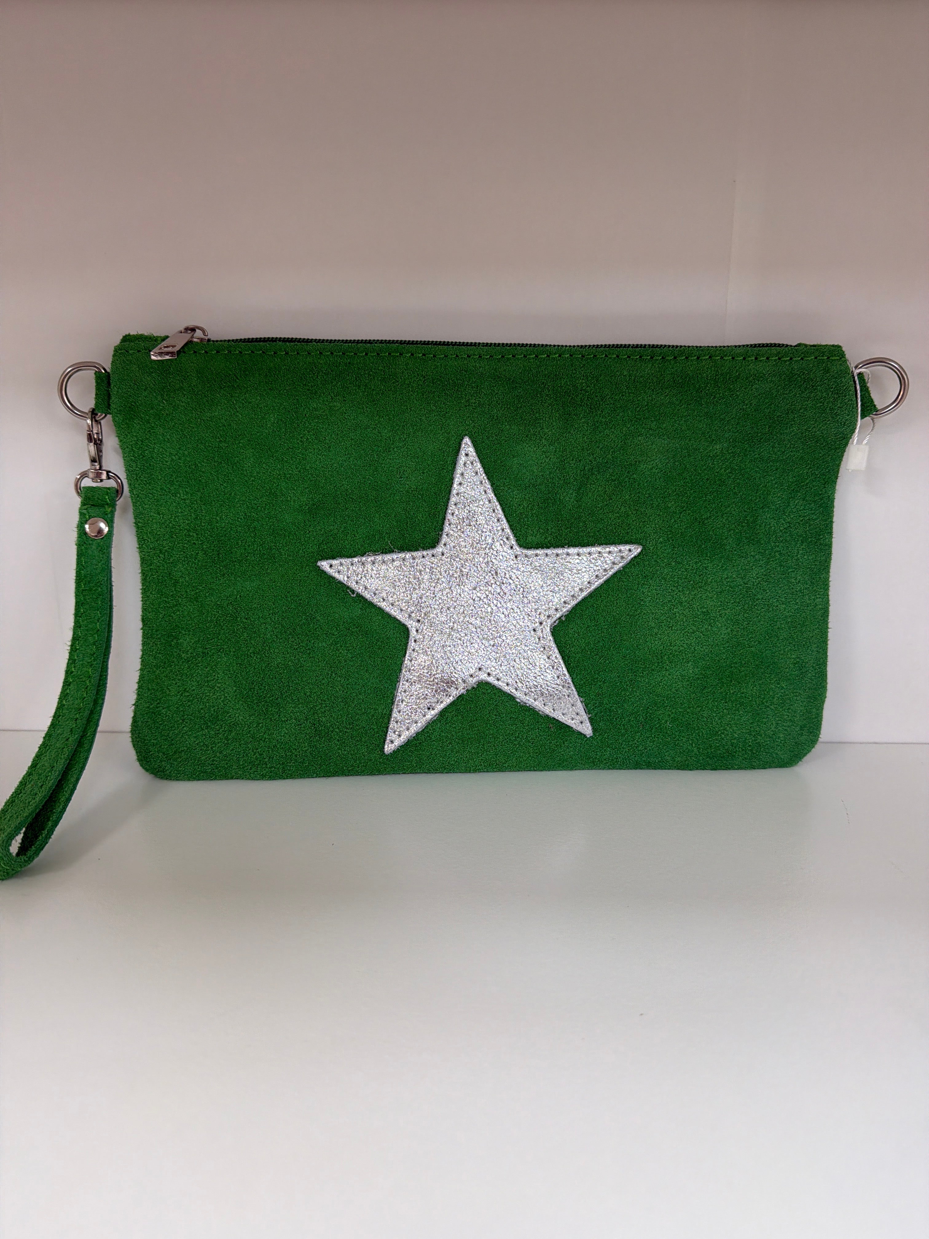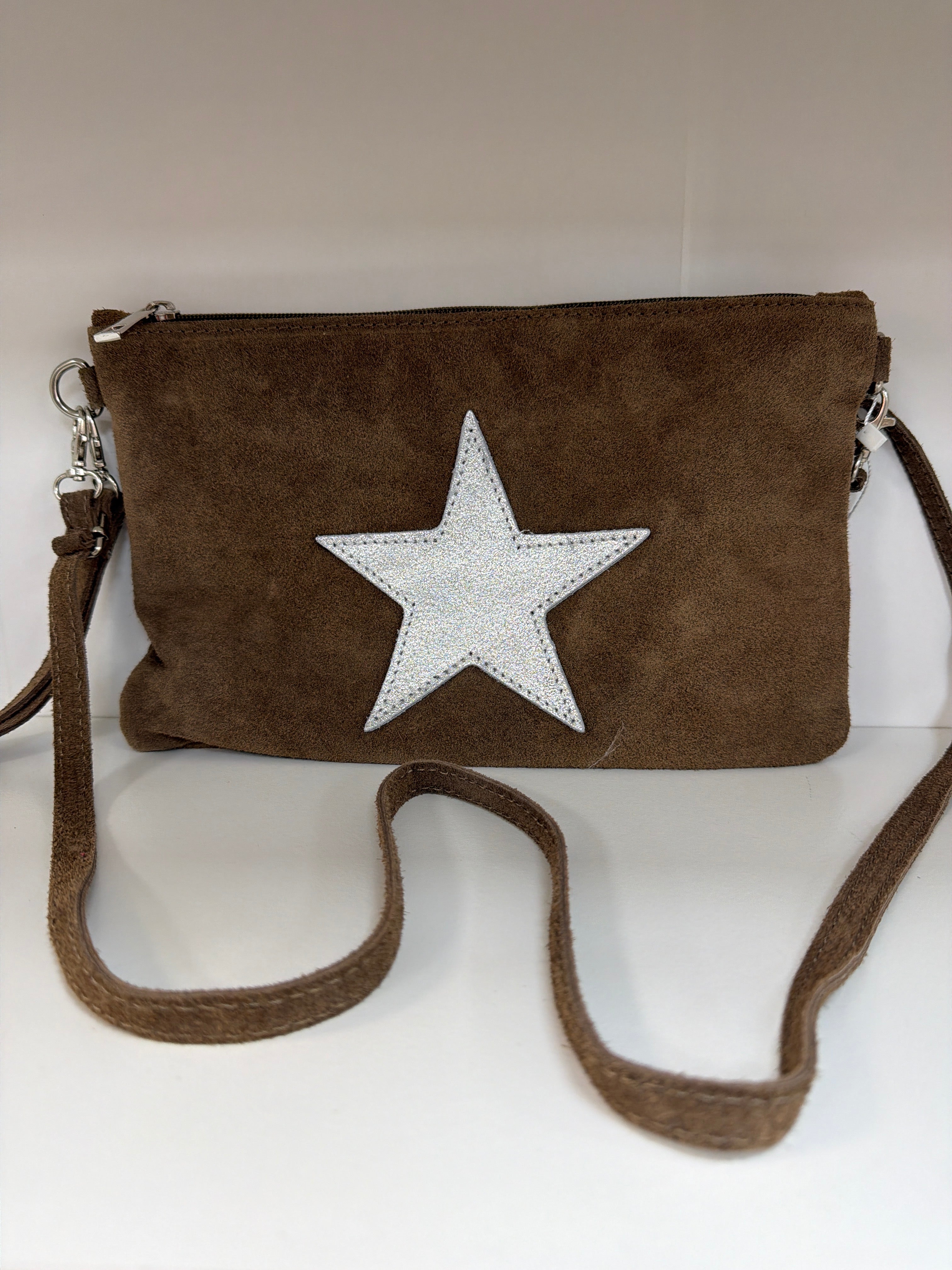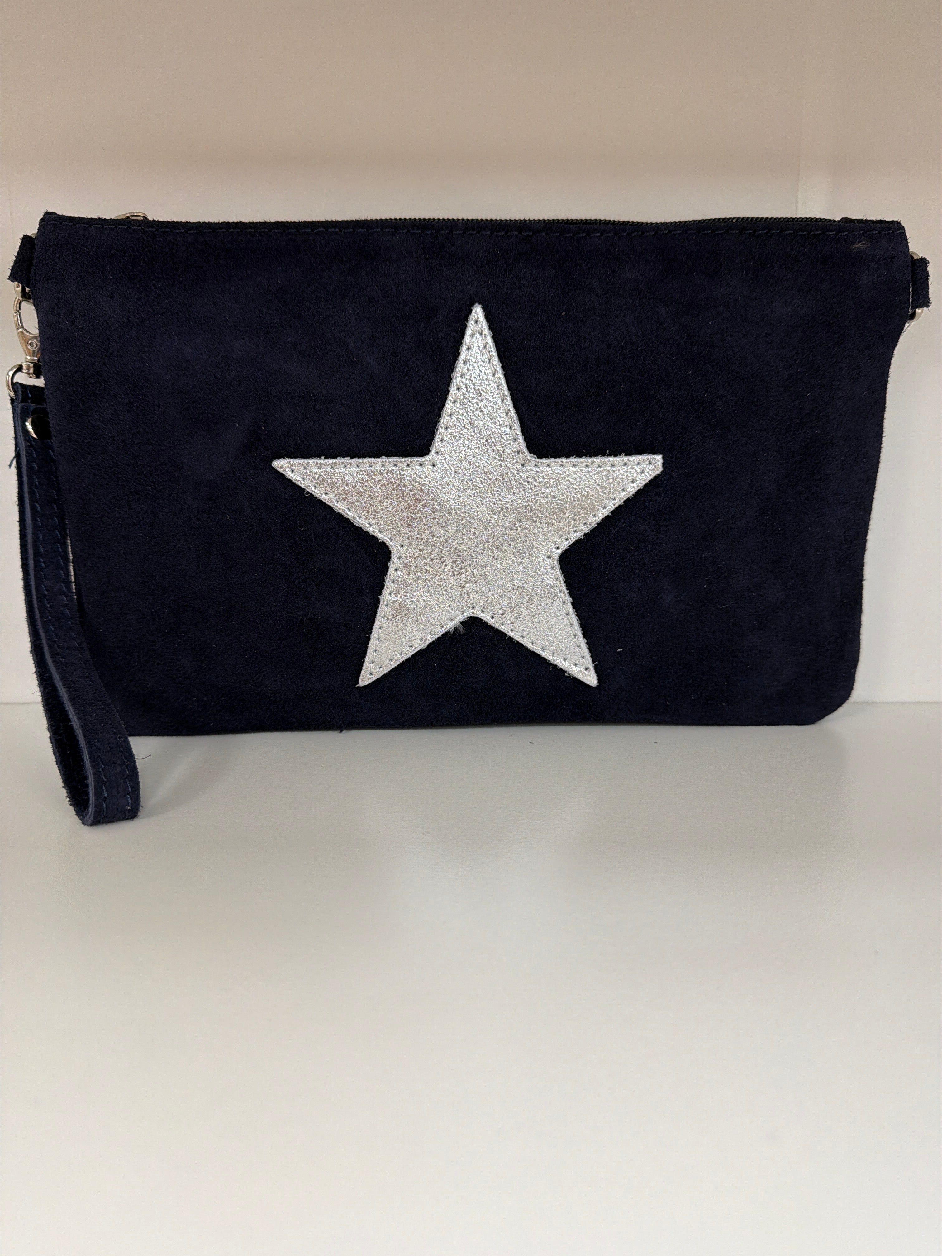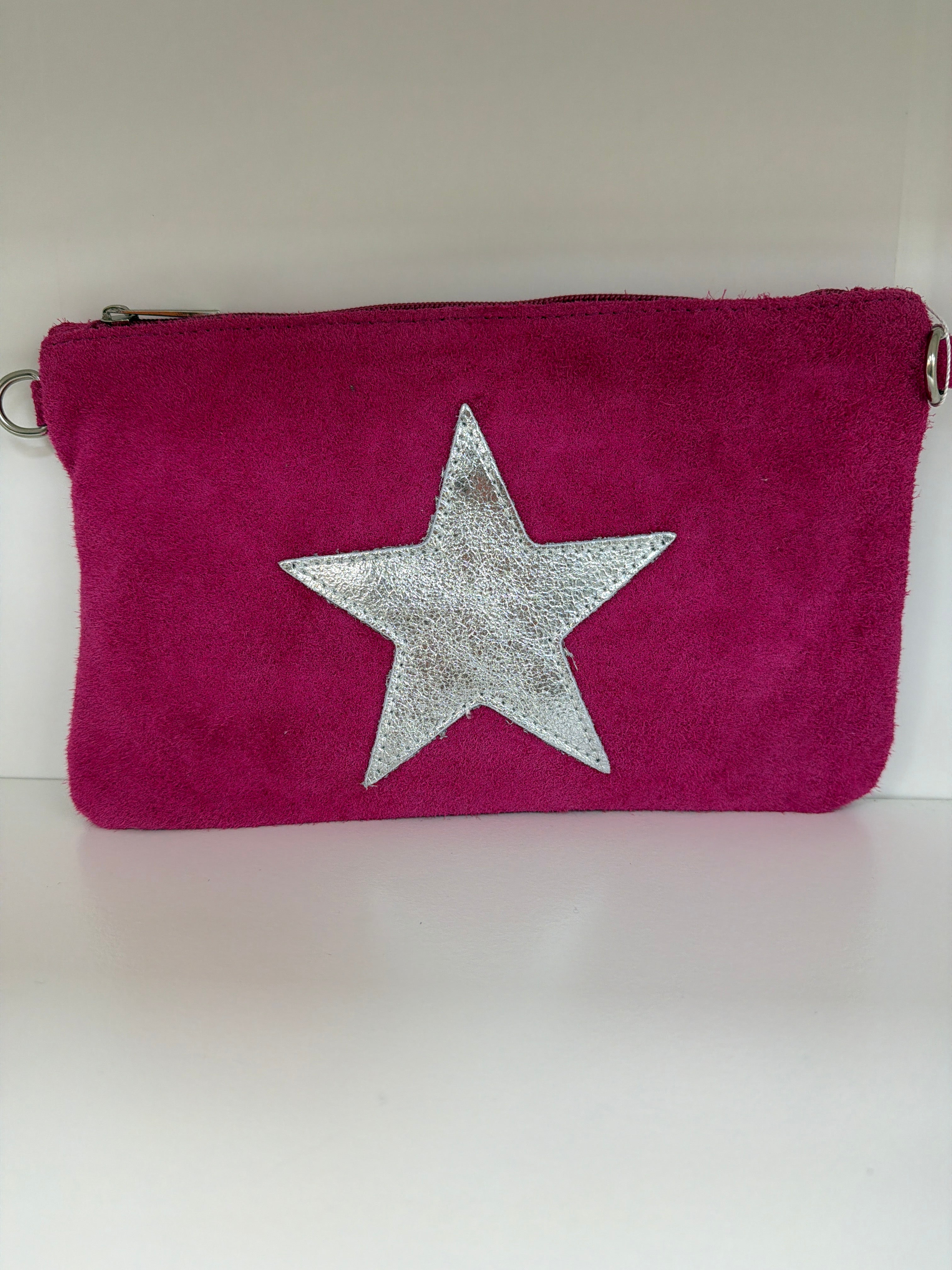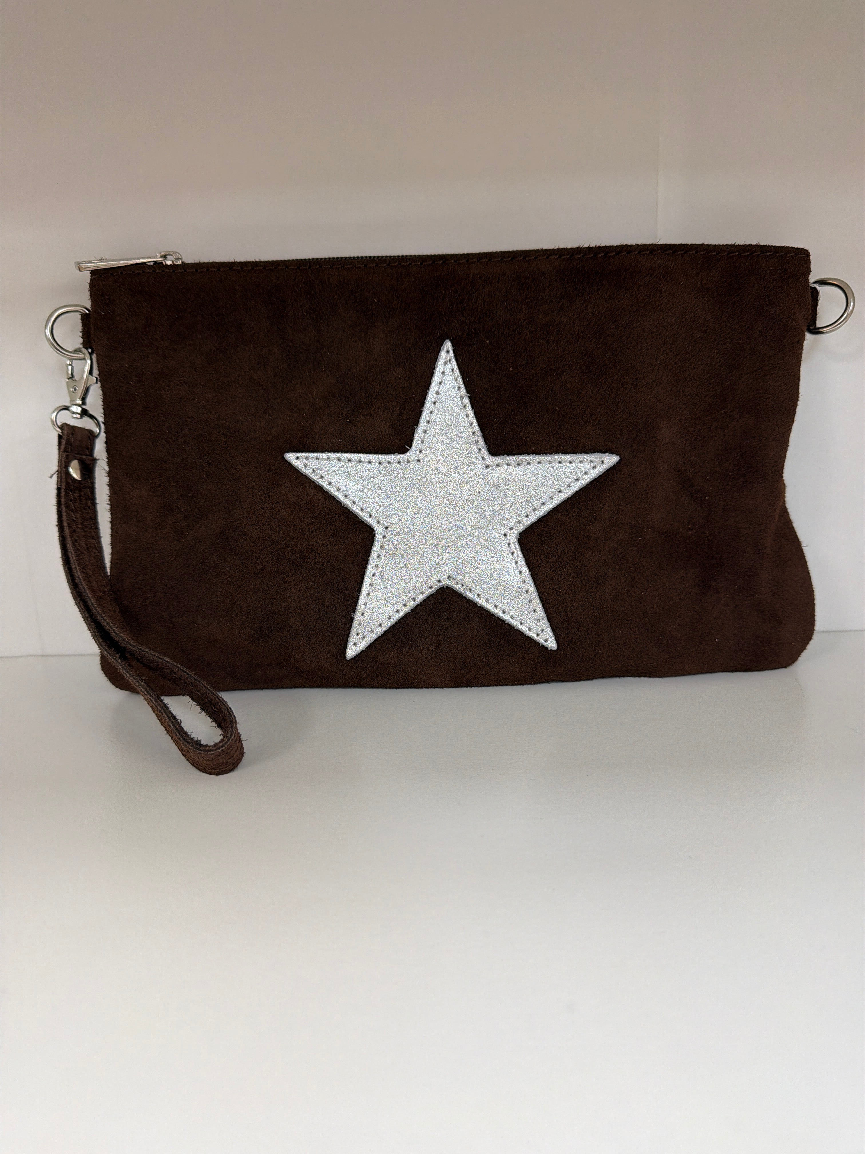 Suede Leather isSilver Star Clutch